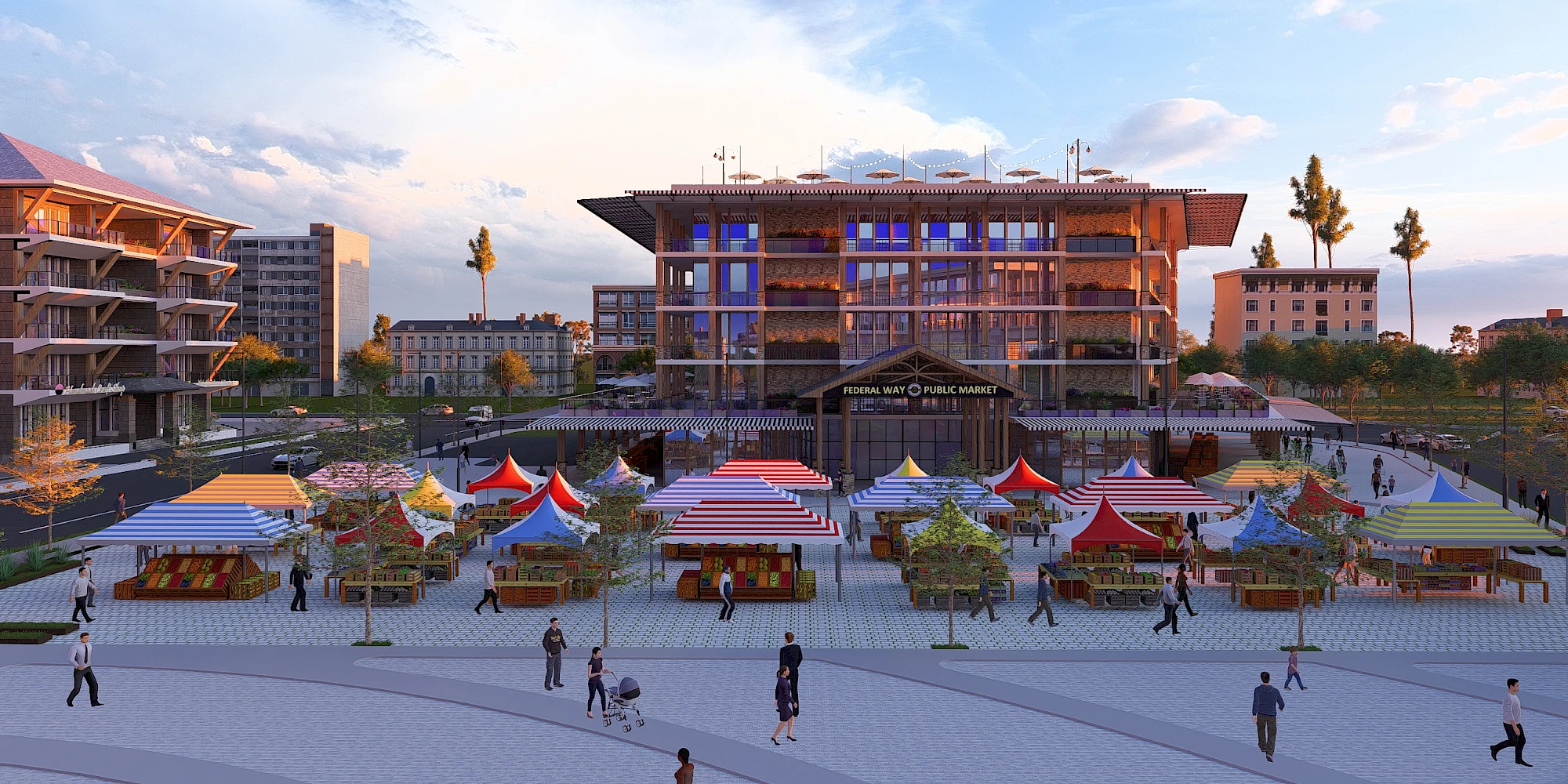The Federal Way Public Market, situated next to the Federal Way Downtown Link light rail station will be transformative for Federal Way and the South Sound. Our contractor, Aaron Zaretsky, was a director of the Pike Place Market for 15 years and has helped develop over 65 public markets worldwide.